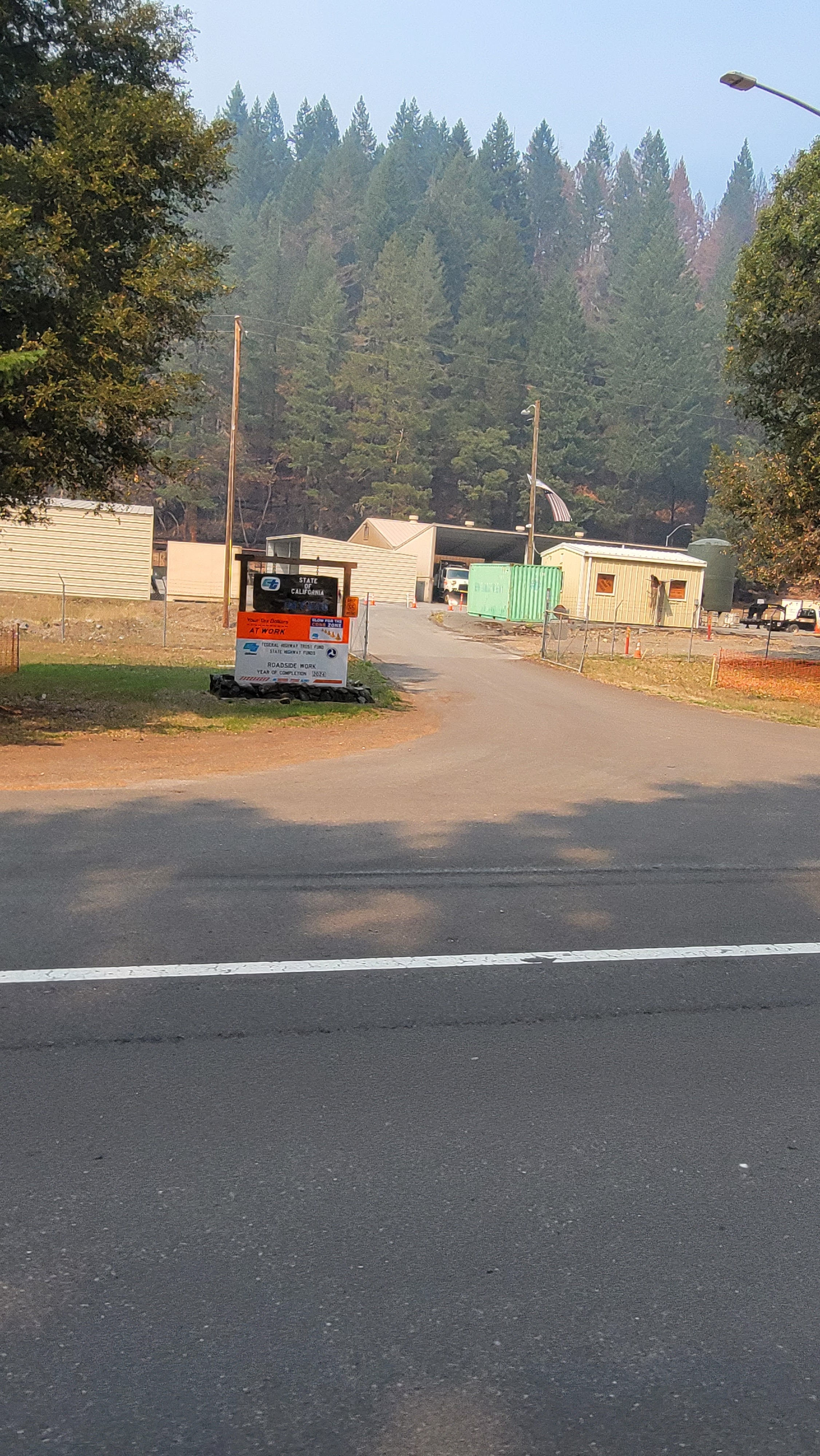 A common sight are the Event Staging Areas. Here is where the crews come in for assignment. Or feeding stations. They may be where heavy equipment is brought in or serviced. Every fair ground, road yard, PG&E service area, some school yards. Rows of tents. Firefighters, male and female. Prison crews of nonviolent cons that are allowed work release. Until recently they could not get jobs in the fire service after their release, but a recent change in the law allows them to use the job skills they get on the fire line.